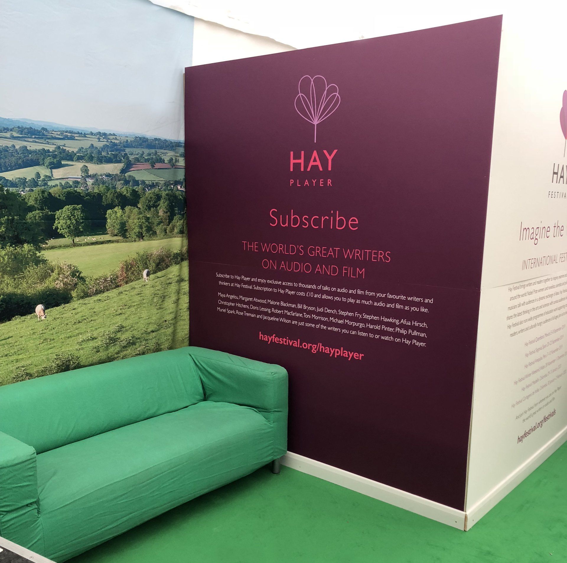 Uprise has had the privilege of working closely with the Hay Festival and multiple other companies who attended the festival during 2017, 2018 and 2019. Large PVC & mesh wraps, wall vinyls, window vinyls & directional signage - working with tight timescales and a vast site, our expert team again put all their skills and knowledge to deliver the project on time and to the highest quality ready for this world famous event, which welcomes 250,000 visitors a year.